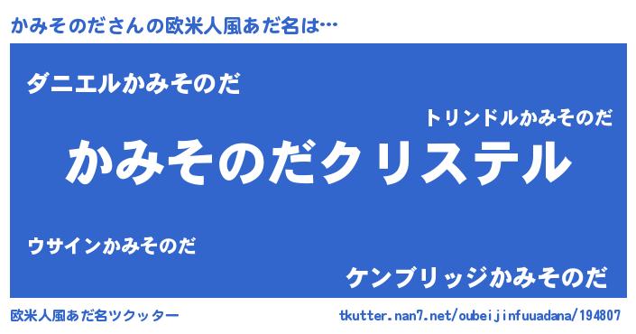 | ファンタジー風あだ名 | 『エターナルカミソノダー』『ゼカミトゥ』 |