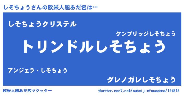 | 男性向けラノベタイトル風あだ名 | 『シソチョウスレイヤー』 |
