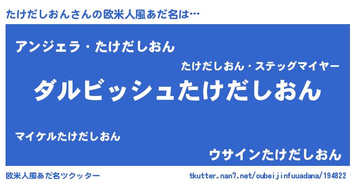 | 女子向けラノベタイトル風あだ名 | 『異世界で失敗しない100のたけだしおん』 |