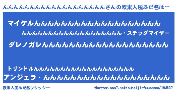 | 男性向けラノベタイトル風あだ名 | 『この素晴らしい世界にんんんんんんんんんんんんんんんんんんんを!』 |