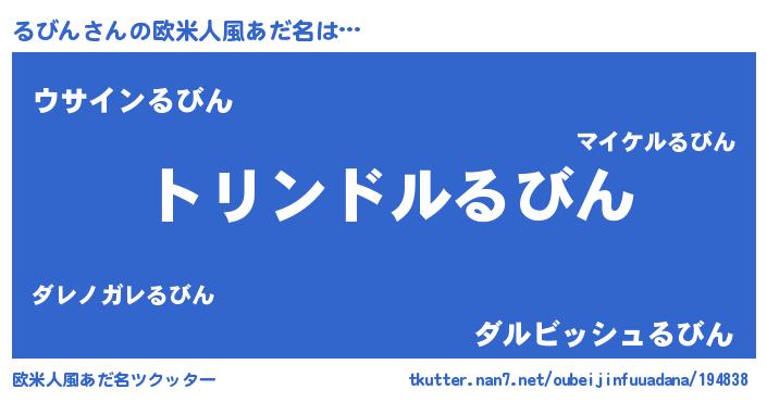 | 男性向けラノベタイトル風あだ名 | 『転生したらるびんだった件』 |