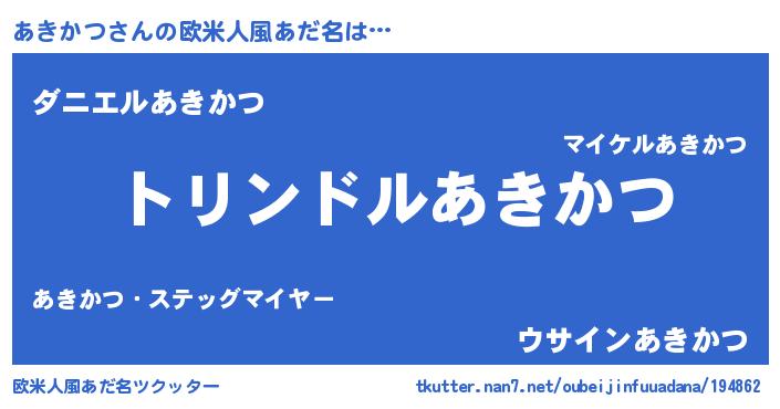 | 男性向けラノベタイトル風あだ名 | 『アキカツスレイヤー』 |