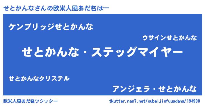 | 男性向けラノベタイトル風あだ名 | 『うちのせとかんなが世界を掌握している!』 |