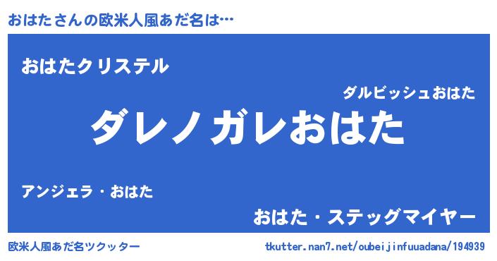 | 意味不明あだ名 | 『住所不定無職おはた(2歳)』 |