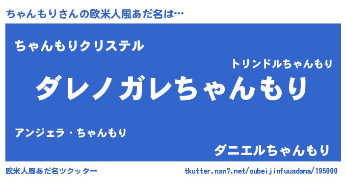 | 男性向けラノベタイトル風あだ名 | 『この素晴らしい世界にちゃんもりを!』 |