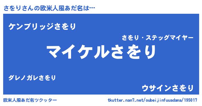| 男性向けラノベタイトル風あだ名 | 『サヲリアートオンライン』 |