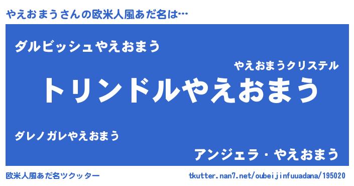 | ヘコむあだ名 | 『やえおまう(小並感)』『酢こんぶ』 |