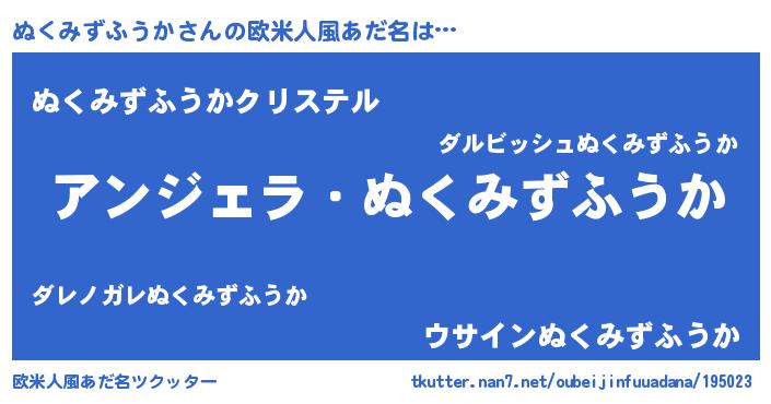 | 意味不明あだ名 | 『ぬくみずふうかフォーエバー』 |