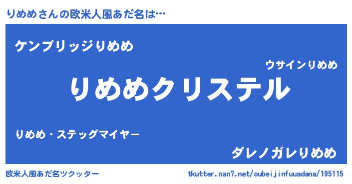 | 意味不明あだ名 | 『りめめフォーエバー』『自称りめめ』 |