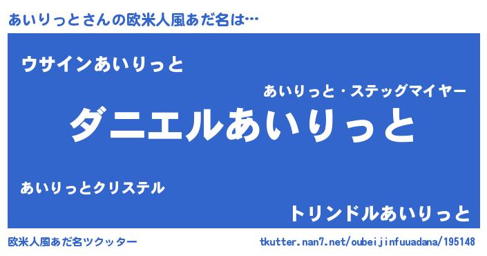 | ヒーロー風カッコイイあだ名 | 『正義の使者あいりっと』『魔戒騎士アイ』 |