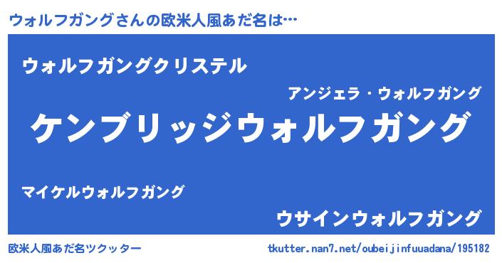 | 意味不明あだ名 | 『自称ウォルフガング』 |