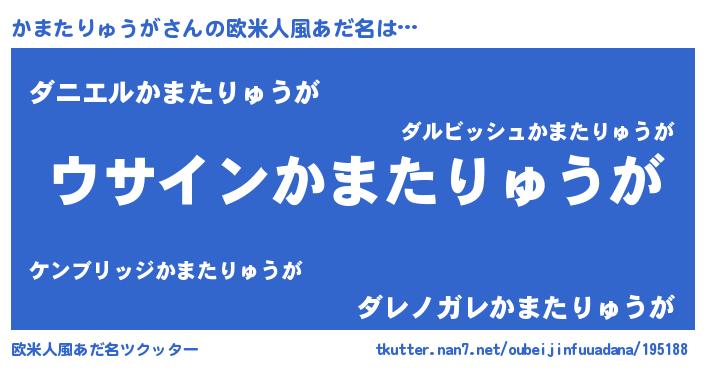 | 男性向けラノベタイトル風あだ名 | 『かまたりゅうがの嫁は女の子じゃないと思った?』 |