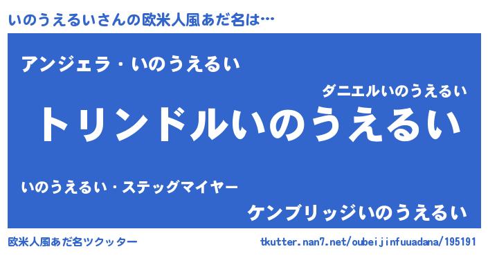 | 男性向けラノベタイトル風あだ名 | 『いのうえるい~年齢イコール彼女いない歴の魔法使い~』 |