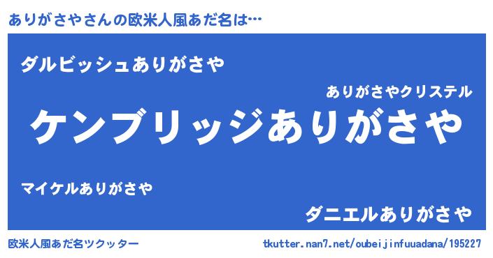 | 女子向けラノベタイトル風あだ名 | 『ありがさやストレイドッグス』 |