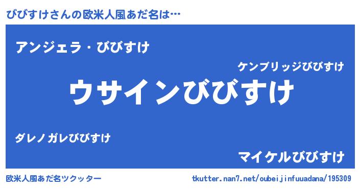 | 男性向けラノベタイトル風あだ名 | 『ダンジョンにびびすけを求めるのは間違っているだろうか』 |