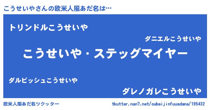 | ヘコむあだ名 | 『こうせいや(苦笑)』『豆乳』 |