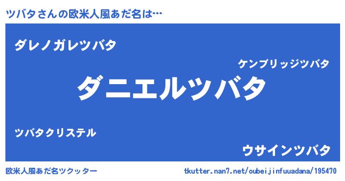 | ヘコむあだ名 | 『ツバぷりん』『つくし』『ツバにー』 |