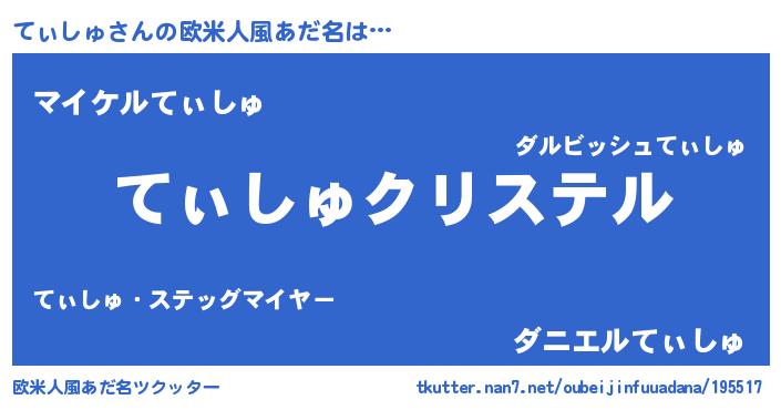 | 意味不明あだ名 | 『てぃしゅフォーエバー』 |