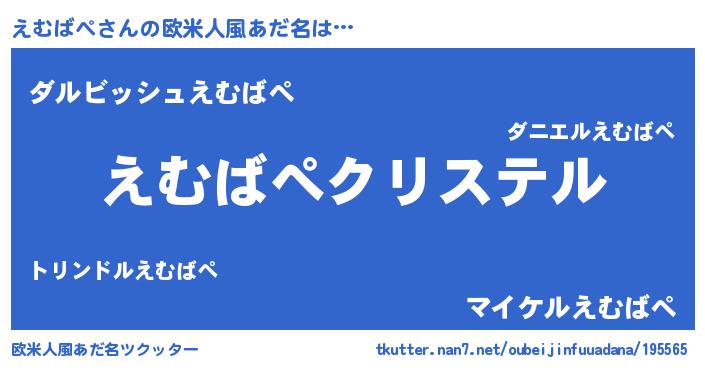 | 女子向けラノベタイトル風あだ名 | 『えむばぺ伯爵の花嫁』『えむばぺ恋絵巻』 |