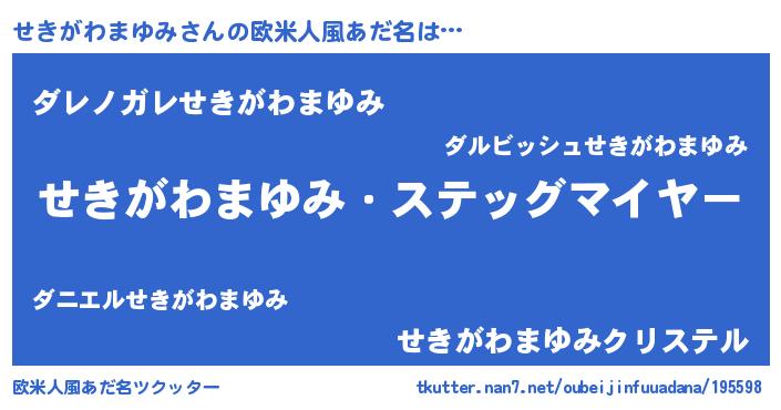 | 意味不明あだ名 | 『住所不定無職せきがわまゆみ(79歳)』 |