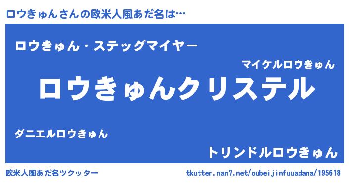 | ファンタジー風あだ名 | 『エターナルロウキュンー』『ロウフェル』 |
