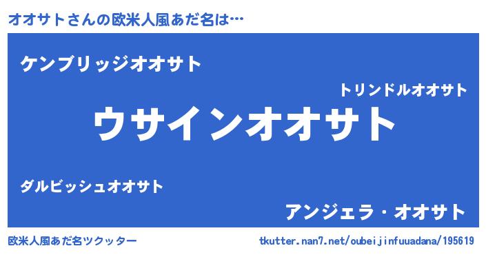 | 男性向けラノベタイトル風あだ名 | 『オオサトの嫁は女の子じゃないと思った?』 |