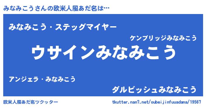| 女子向けラノベタイトル風あだ名 | 『みなみこうの卵を拾いまして』 |