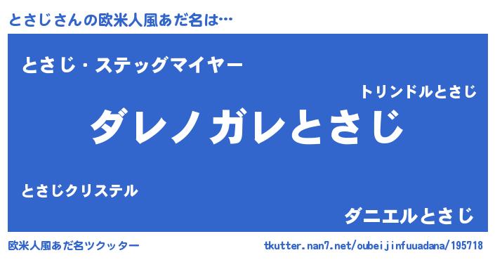 | 男性向けラノベタイトル風あだ名 | 『魔弾の王ととさじ』『トサジスレイヤー』 |