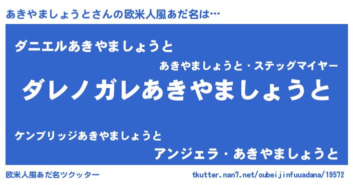 | 意味不明あだ名 | 『住所不定無職あきやましょうと(8歳)』 |