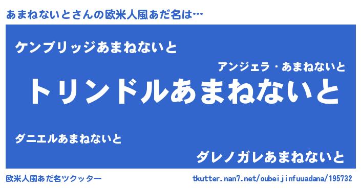 | 男性向けラノベタイトル風あだ名 | 『転生したらあまねないとだった件』 |