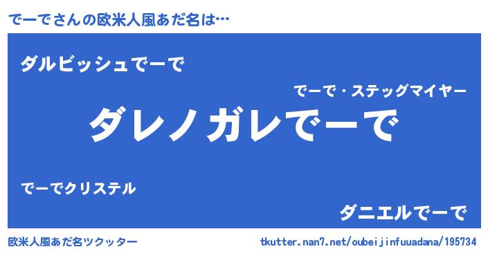 | 意味不明あだ名 | 『住所不定無職でーで(43歳)』 |