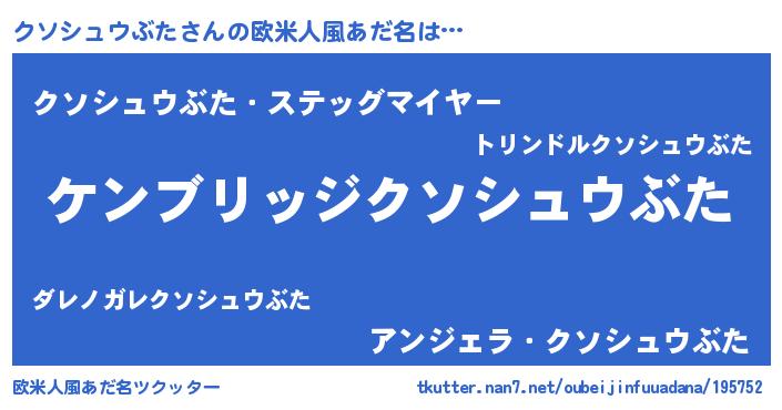 | 肩書あだ名 | 『クソシュウぶた閣下』 |
