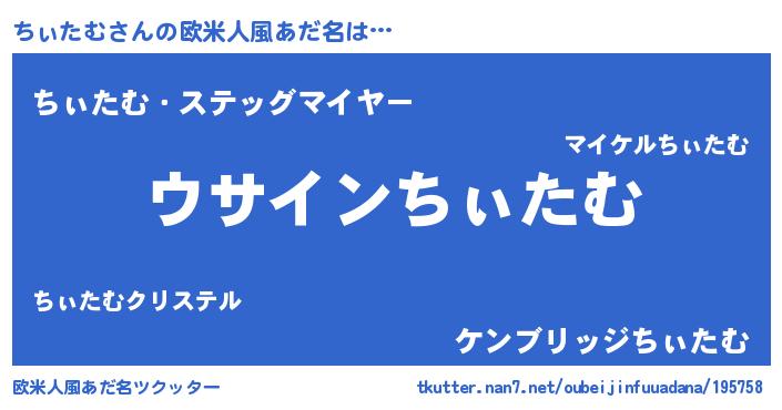 | 男性向けラノベタイトル風あだ名 | 『ダンジョンにちぃたむを求めるのは間違っているだろうか』 |