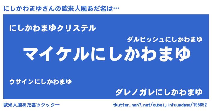 | 男性向けラノベタイトル風あだ名 | 『にしかわまゆの憂鬱』 |