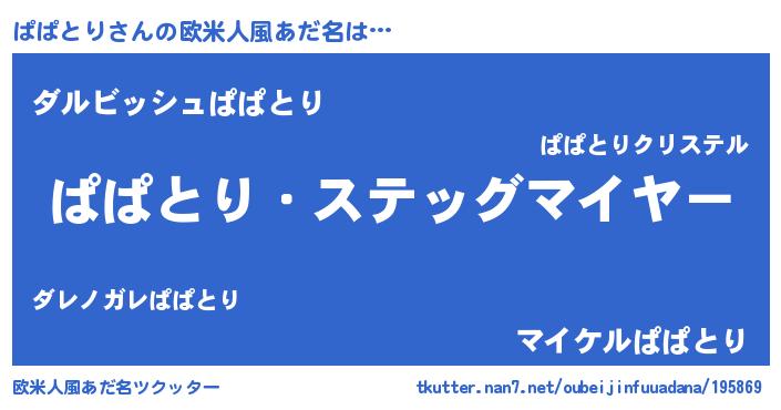 | 意味不明あだ名 | 『永久保存ぱぱとり』『ペロリンぱぱとり』 |