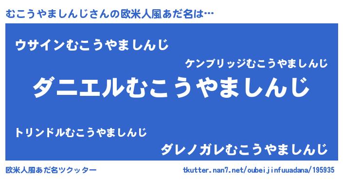 | 男性向けラノベタイトル風あだ名 | 『おまえをオタクにしてやるから、俺をむこうやましんじにしてくれ! 』 |