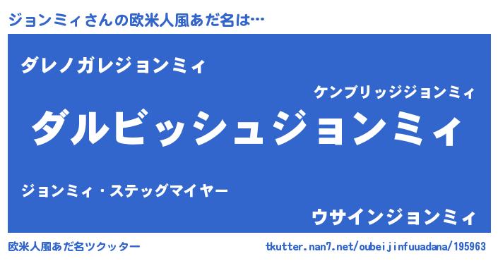 | 男性向けラノベタイトル風あだ名 | 『ジョンミィという概念が存在しない退屈な世界 』 |