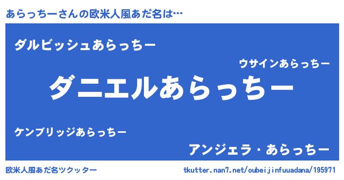 | 女子向けラノベタイトル風あだ名 | 『あらっちー恋絵巻』 |