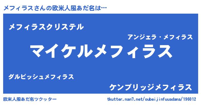 | ファンタジー風あだ名 | 『メフフェル』『エターナルメフィラスー』 |