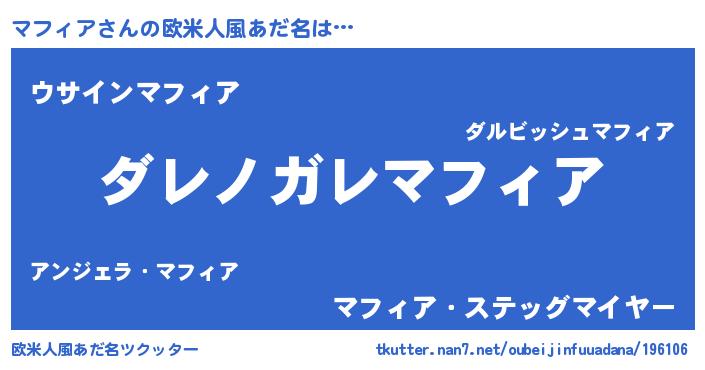 | 男性向けラノベタイトル風あだ名 | 『この素晴らしい世界にマフィアを!』 |