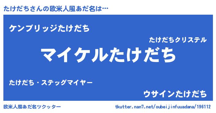 | 男性向けラノベタイトル風あだ名 | 『タケダチアートオンライン』 |