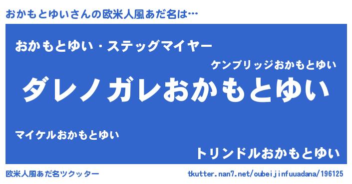 | 男性向けラノベタイトル風あだ名 | 『魔弾の王とおかもとゆい』 |