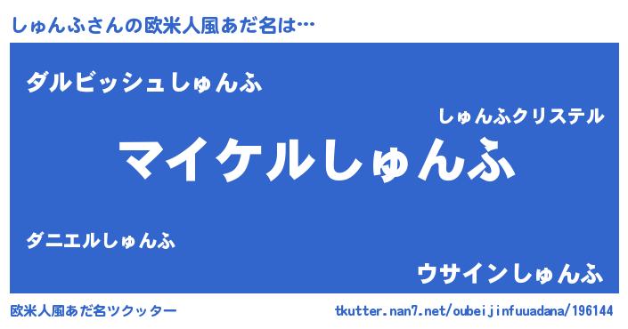 | 男性向けラノベタイトル風あだ名 | 『シュンフアートオンライン』 |