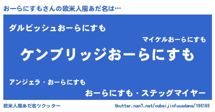 | 意味不明あだ名 | 『自称おーらにすも』 |