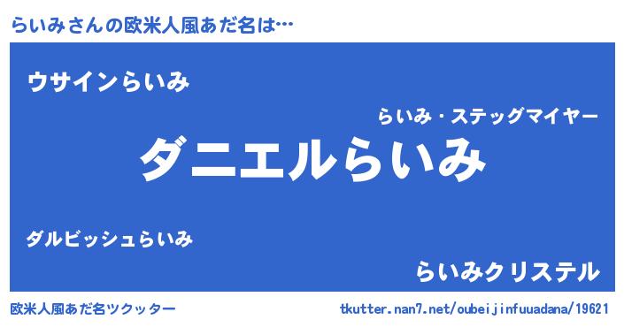 | 女子向けラノベタイトル風あだ名 | 『死神らいみの再婚』『らいみ様がみてる』 |
