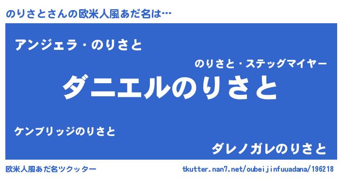 | 男性向けラノベタイトル風あだ名 | 『おまえをオタクにしてやるから、俺をのりさとにしてくれ! 』 |