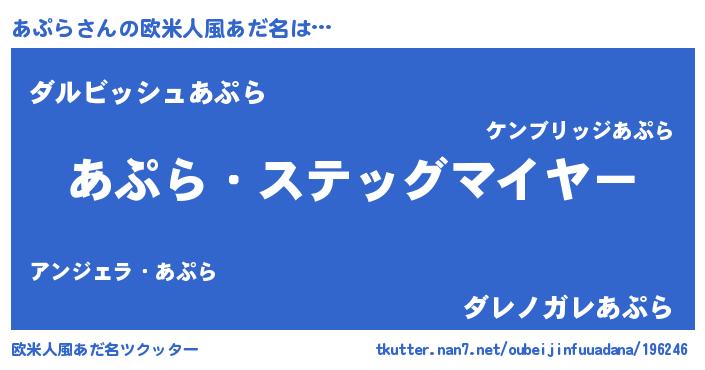 | 意味不明あだ名 | 『永久保存あぷら』『自称あぷら』 |