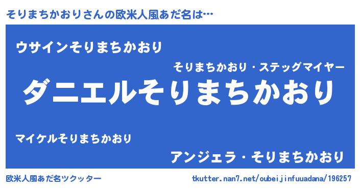 | 男性向けラノベタイトル風あだ名 | 『おまえをオタクにしてやるから、俺をそりまちかおりにしてくれ! 』 |