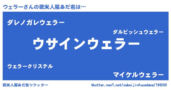 | 意味不明あだ名 | 『とにかく怪しいウェラー』 |