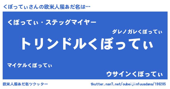 | 胡散臭い通販商品みたいなあだ名 | 『信頼と実績のサプリメント…その名も「くぼってぃ」』 |